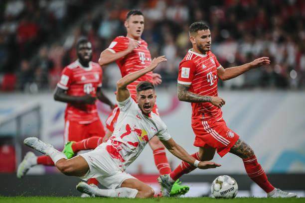 拜仁的首发基本上与人们赛前预测的一致,帕瓦尔、于帕梅卡诺、·埃尔南德斯和阿方索·戴维斯组成四后卫,基米希在后腰位置上搭档扎比策,穆勒与穆西亚拉分居两翼,锋线上格纳布里和马内组成双前锋,德利赫特、马兹拉维和赫拉芬贝赫三名新援都坐在替补席上。莱比锡则以361阵形回应,锋线上突前的是上赛季德甲最佳球员恩昆库,中场领衔的则是拜仁垂涎已久的莱默。